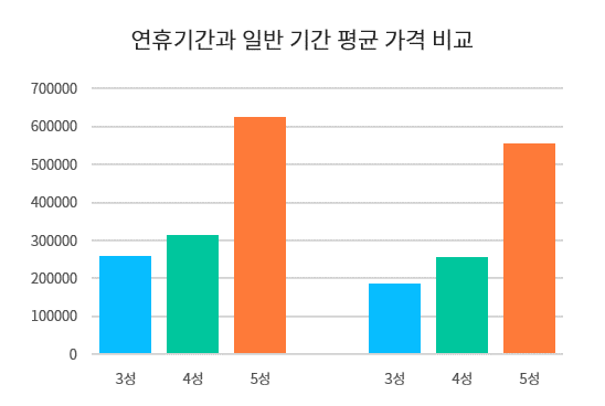 5성급 비디오 슬롯 머신의 주말, 주중 평균 가격 차이는 15%며, 4성급 비디오 슬롯 머신은 23%, 2~3성급 비디오 슬롯 머신은 28%로 성급이 낮을수록 주말, 주중 간 가격 차이가 더 많이 발생하는 것을 알 수 있다. 5성급 비디오 슬롯 머신의 주말, 주중의 최저 가격 차이는 10%며, 4성급 비디오 슬롯 머신은 18%, 2~3성급 비디오 슬롯 머신은 22%로 최저가격 역시 성급이 낮을수록 주말, 주중 간 차이가 더 크다.