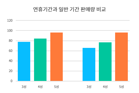 주말, 주중의 판매량 차이를 보면 5성급 비디오 슬롯 머신은 2%, 4성급은 7%, 2~3성급은 12%로 성급이 낮을수록 주말, 주중 간 판매량 차이가 더 높다는 것을 알 수 있다.