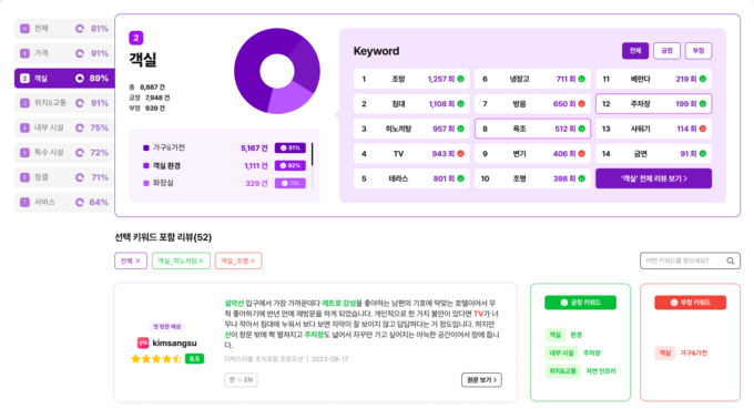 배달의 민족, 쿠팡 등 많은 플랫폼에서 증명됐듯 고객 후기는 잠재고객의 구매 결정에 큰 영향을 미친다. 호텔 예약서비스의 온라인화와 OTA 서비스의 영향력 확대로 리뷰관리는 성공적인 호텔 운영을 위한 필수조건이 된 만큼, PMS, CMS, RMS를 잇는 호텔산업의 주요 솔루션 중 하나로 주목받게 될 것으로 예상한다.