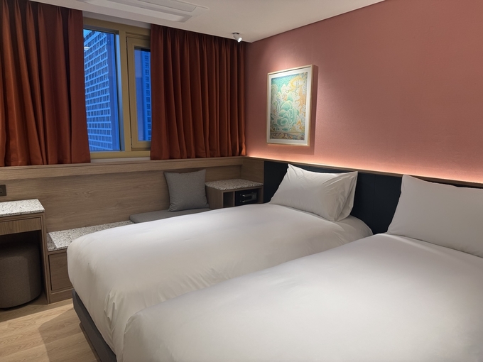 먼저 시몬스와의 협업으로 뉴블랑 센트럴 명동만을 위해 특별 제작한 39cm 높이의 매트리스를 제공하고 있다. 침대도 더블베드가 아닌 킹베드를 넣어 3인 가족이 누워도 좁은 느낌이 들지 않도록 했다. 숙면이 중요한 만큼 100% 햇빛을 차단하기 위해 커튼은 물론 커튼 틈새로 들어오는 불빛까지 막을 수 있는 암막커튼을 디자인적으로 풀어냈다. 피로를 충분히 풀어주기 위해 샤워기의 수압에도 신경을 썼으며 5성 슬롯사이트 굿모닝에서도 도입하기 어려운 최고급 어메니티를 제공하고 타올 등의 리넨도 차별화 역할을 톡톡히 한다.