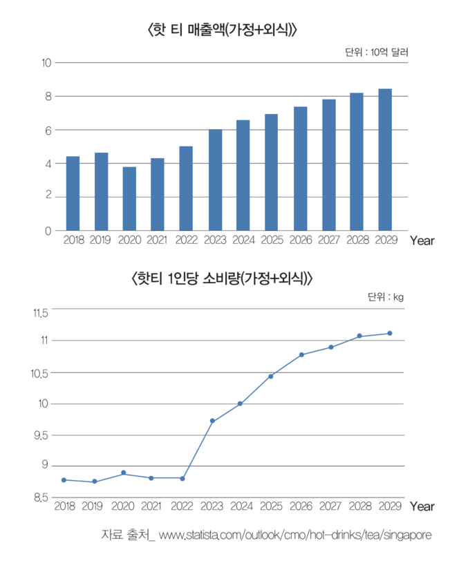 싱가포르는 전통적으로 홍차와 녹차가 주를 이루는 시장이지만, 오늘날에는 프리미엄 티, 스페셜티 티의 소비가 증가하는 가운데, 웰니스, 헬스의 세계적인 트렌드가 반영되면서 허브티, 프루트 티, 웰니스 티에 대한 수요도 현재 증가하고 있다. 또한 다양한 버블 티들이 인기가 높아지며 전체 티 시장의 성장을 견인하고 있다.이번 호에서는 싱가포르의 최신 티 현황에 대해 소개한다.