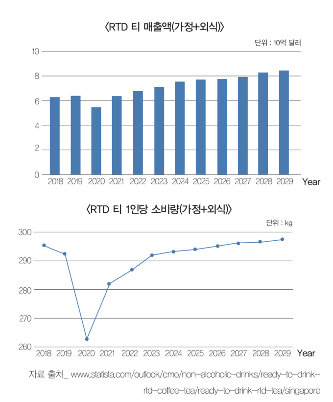 싱가포르는 2024년 RTD 티 안전한 슬롯사이트에서 가정에서의 매출이 7억 달러, 외식에서의 매출이 6억 달러로 합산해 총매출액이 13억 달러로 예상된다. 특히 가정에서의 매출은 오는 2028년까지 4.03%의 연평균 성장률(CAGR)로 성장할 것으로 보인다. 2024년도 가정에서의 1인당 평균 매출액(Average Revenue Per Capita)은 115.8달러로 예상되는데, 이는 세계적으로도 매우 높은 수준이다.