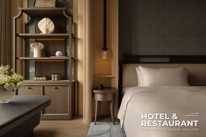 객실은 세심한 디테일이 돋보인다. 안드레 푸는 객실을 설계할 때, 공간이 단순히 잠만 자는 곳이 아니라, 감성적인 경험을 제공하는 공간으로 만들어야 한다고 강조했다. 따라서 영국의 장인인 드 고르네이와 협업해 실크 패널을 맞춤 제작하고, 고급 마케트리 기술을 활용해 벽과 바닥의 디자인을 구성했다. 이런 섬세한 디테일들은 공간의 분위기를 고요하고 우아하게 만들어, 고객들에게 품격 있는 숙박 경험을 제공한다. 또한, 방마다 다른 테마와 색상으로 구성된 인테리어는 각 객실이 고유의 개성을 가진 예술작품처럼 느껴지도록 한다.