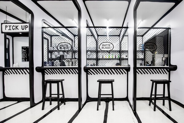 테이블, 벽면, 컵에 이르기까지 모든 요소가 철저하게 흑백으로 디자인돼 있어, 공간 전체가 하나의 예술 작품이자 인터랙티브 미디어로 기능하다. 특히, 이러한 만화적 배경은 개인의 사진 및 영상 콘텐츠와 즉각적으로 결합, 다양하고 활발한 SNS의 시각적 경험을 창출한다. 조슈아 비데스의 팝아트적 미학은 다양한 글로벌 브랜드와의 협업을 통해 지속적으로 발전하고 있으며, 매트블랙커피는 이러한 예술적 비전이 F&B 공간과 만나 새로운 형태의 체험을 만들어내는 성공적인 사례로 평가받고 있다.