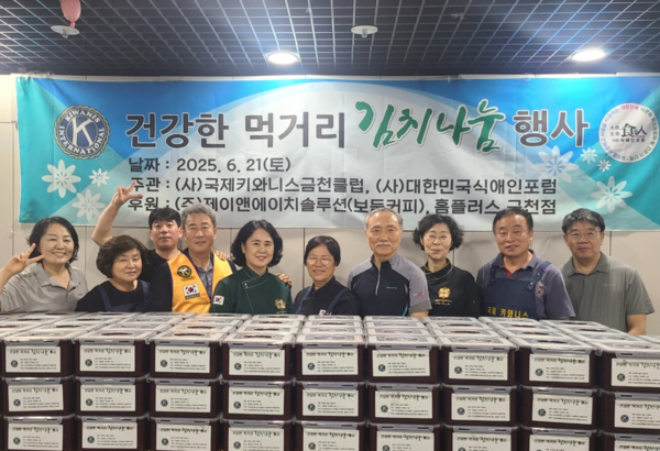 여름이 시작되는 6월에 진행한 ‘독거노인 열무김치 나눔 자원봉사’는 법인사무국장 김성수 교수와 사회봉사단장 강경갑 이사가 총괄한 가운데, 본 해외 슬롯의 전문가 회원은 물론 국제키와니스서울 및 금천클럽 봉사단원들이 공동으로 정성스럽게 담은 열무김치를 금천구에 거주하는 독거노인들에게 전달했으며, 특히 ㈜제이앤에이치솔루션(대표이사 김영진)과 홈플러스 금천점의 협찬이 더해져 행사의 의미가 더욱 빛을 발했다.