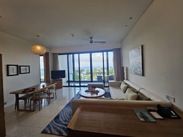 이곳 해변 여러 곳에 설치된 해먹에서 책을 읽는 순간, 바다 파도의 리듬은 문장의 박자가 된다. 수영장에서 막 걸어 나온 몸으로 데크 체어에 누워 모자를 쓰고 책장을 넘길 때, 글자는 더 이상 활자에 머물지 않고 파도와 햇빛, 바람 속으로 스며든다. 객실은 군더더기 없이 절제된 디자인 덕에 오히려 책이 더 편하게 눈에 들어온다(다만 깨끗하다 못해 투명한 유리 덕에 지나가는 사람들의 시선을 받을 수 있는 점은 신경써야 한다). 해질 무렵, 테라스에서 리조트에 설치된 일리 캡슐머신으로 커피를 내려 헤밍웨이의 문장을 읽으면 바닷바람이 그것을 이어받아 끝까지 낭독해 주는 듯하다.