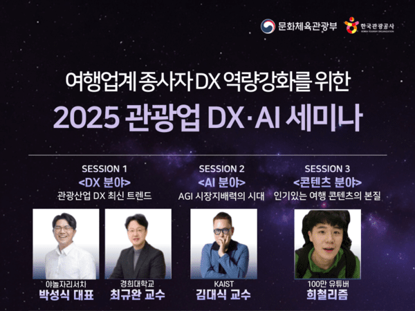 문화체육관광부와 한국관광공사(이하‘공사’)는 관광산업 종사자의 디지털전환(DX),인공지능(AI)과 연계한 역량 강화를 위해11월3일 서울 섬유센터 이벤트홀(삼성역)에서‘관광업DX·AI세미나’를 개최한다.