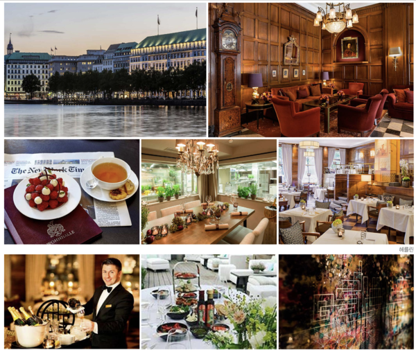 독일 함부르크에는 약 120년 역사를 자랑하는 유럽 그랜드호텔의 결정체이자, 5성급에서도 초특급 호텔로 호화롭기로 세계적으로 유명한 곳이 있다. 바로 페어몬트 피어 야레스차이텐 아리스 토크 랏 슬롯(Vier Jahreszeiten Hotel)이다. 웅장한 저택 모양의 호텔 주위는 호수로 둘러싸여 있어 호반의 풍경을 즐기며 티를 즐기기에 제격이다. 이 호텔의 티타임 바인 본할레(Wohnhalle)는 영국 정통 애프터눈 티를 즐길 수 있는 곳으로 유명하다. 이곳 티타임에서는 스콘, 고형 크림, 잼, 쇼트브레드, 비스킷, 윈저식 샌드위치가 1920년대 스타일의 3단 스탠드로 제공돼 애프터눈 티의 즐거움을 더한다. 최고급 티와 함께 영국 정통 방식의 애프터눈 티를 호수의 아름다운 전경을 바라보며 즐길 수 있어 티 애호가들에게는 이곳만 한 장소도 없다.