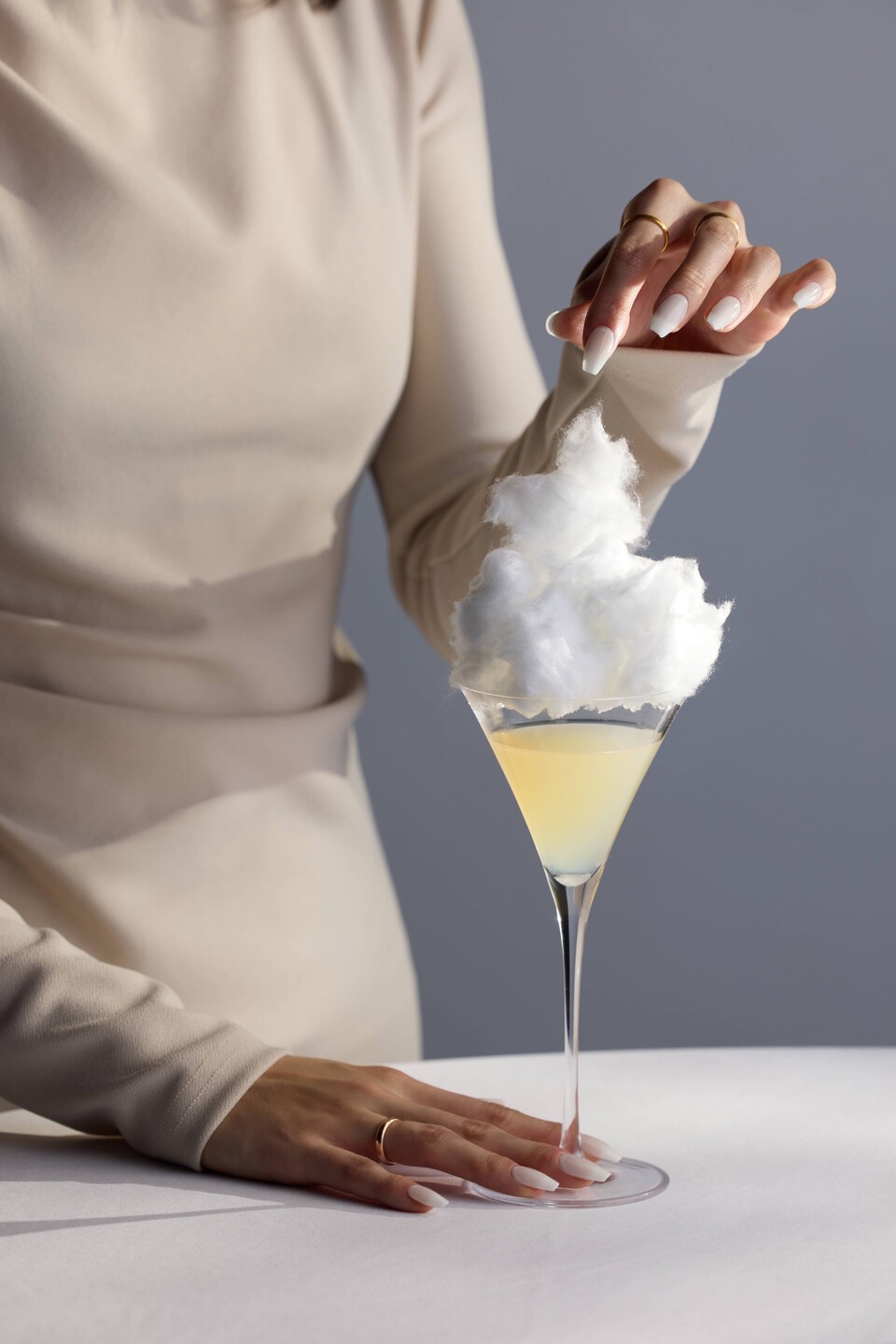 JW 메리어트 동대문 스퀘어 서울 더 그리핀 루프탑 바의 ‘Cloud Whisper’ 칵테일도 비슷한 철학에서 출발했다. 더 그리핀 루프탑 바의 이안 맹(Ian Maeng) 헤드 바텐더는 “잔을 들었을 때 천천히 느껴지는 부드러운 인상”을 가장 중요한 이미지로 떠올렸다며, “구름이 주는 가볍고 포근하며 깨끗한 감각을 칵테일 안에 담고 싶었고, 그래서 전체적인 구조를 무겁지 않고 투명하게 가져갔다.”고 말했다. 살구를 인퓨징한 오렌지 리큐어와 자몽, 레몬과 같은 산미 있는 재료들은 상큼함을 더하는 동시에, 베르가못의 시원한 노트 속에서 은은하게 균형을 잡아주는 역할로 선택했다. 산미가 앞서기보다는 입 안에서 부드럽게 퍼지며 마무리를 정리해 주는, ‘속삭임’이 되기를 의도한 것이다.