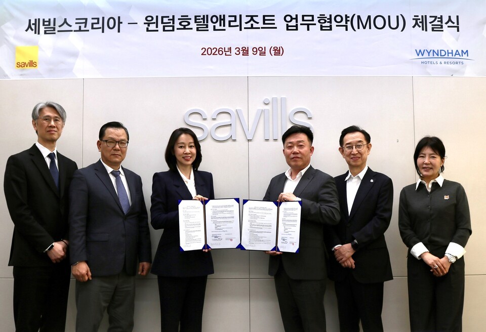 이번 업무협약 체결식은9일 오후 세빌스코리아 이수정 대표이사와 윈덤호텔앤리조트 아시아퍼시픽 하대원 개발 총괄이사를 비롯한 양사 관계자들이 참석한 가운데 세빌스코리아 본사에서 진행됐다.